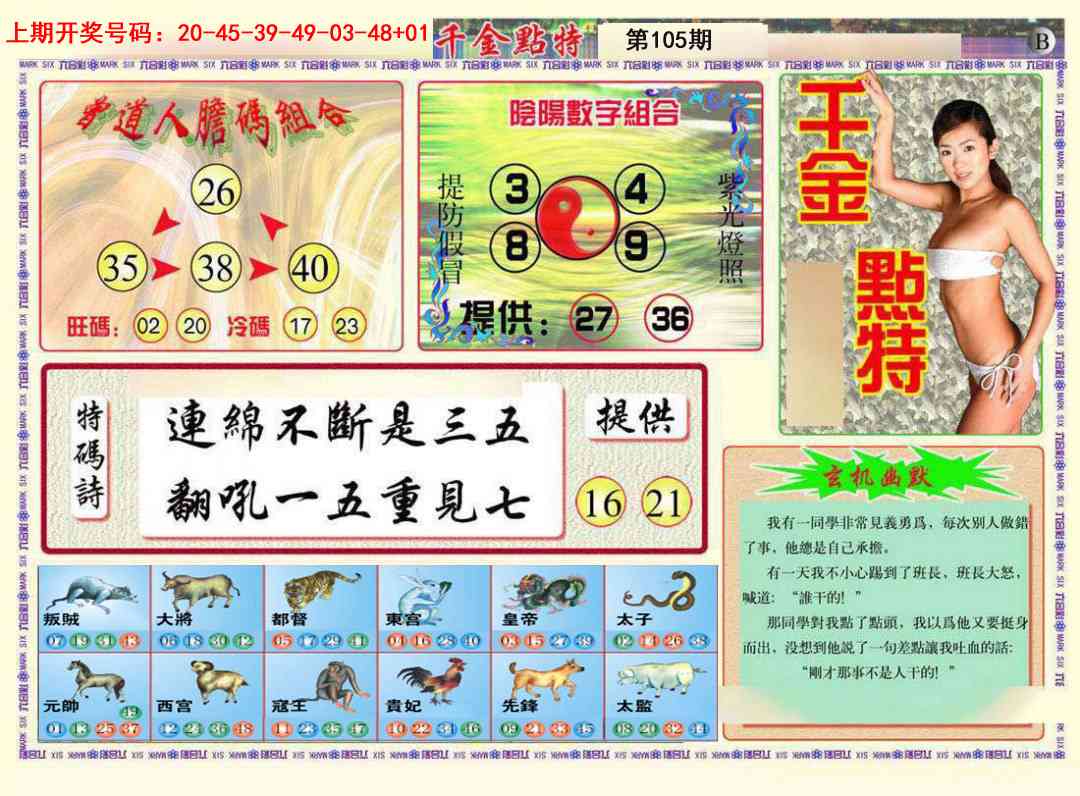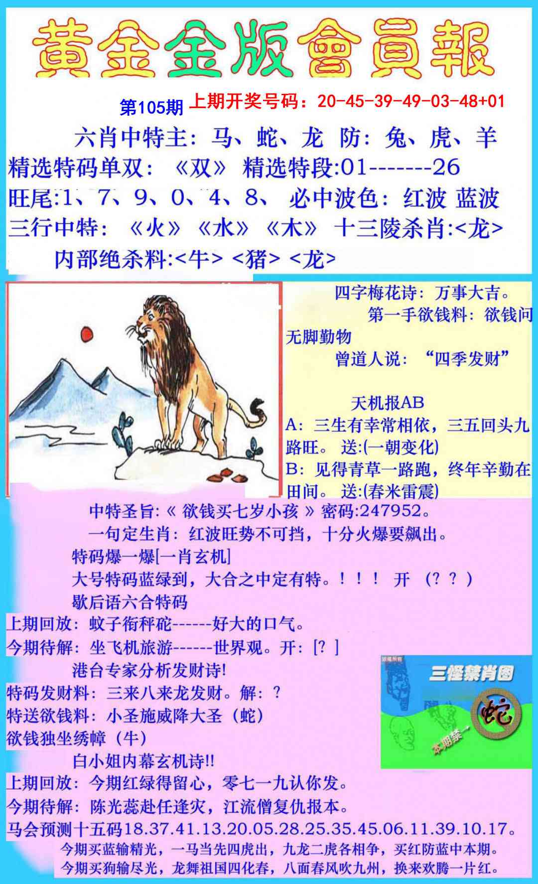 | 105期:〖六合之家〗绝杀一尾全年无错 |