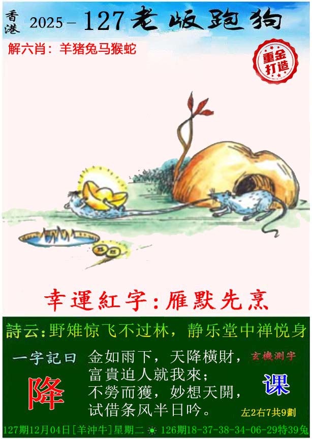 跑狗七肖:鼠猪虎兔猴鸡羊